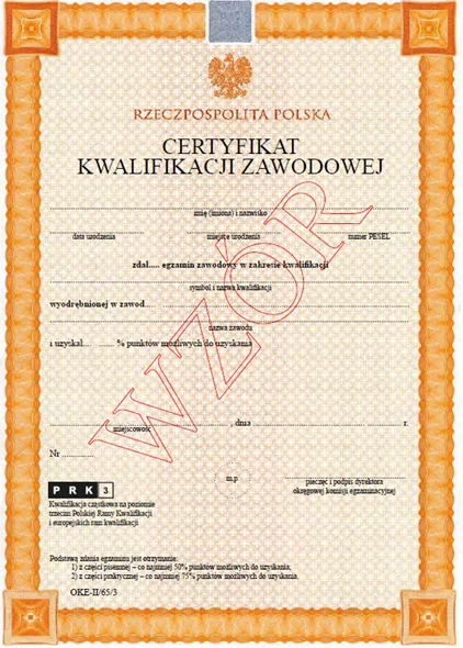 1. Zaświadczenie ukończenia kwalifikacyjnego kursu zawodowego